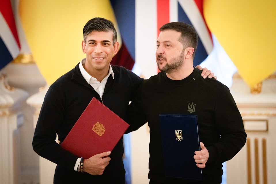 Ουκρανός πρόεδρος Βολοντίμιρ Ζελένσκι και ο Βρετανός πρωθυπουργός Ρίσι Σούνακ υπέγραψαν σήμερα μια συμφωνία για την ασφάλεια μεταξύ των δύο χωρών στο Κίεβο.