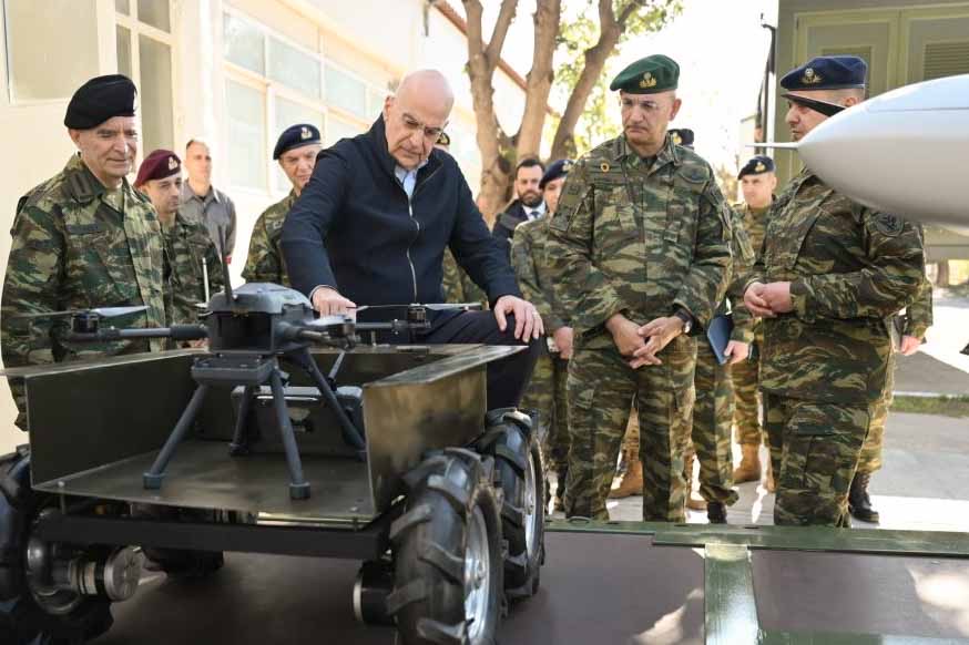 Ο Υπουργός Εθνικής Άμυνας, Νίκος Δένδιας, συνοδευόμενος από τον Αρχηγό ΓΕΕΘΑ Στρατηγό Δημήτριο Χούπη και τον Αρχηγό ΓΕΣ Αντιστράτηγο Γεώργιο Κωστίδη, επισκέφθηκε σήμερα, Μεγάλη Τετάρτη 8 Απριλίου 2026, το 306 Εργοστάσιο Βάσης Τηλεπικοινωνιών (306 ΕΒΤ), στις Αχαρνές, όπου λειτουργεί το Συνεργείο Κατασκευής Συστημάτων μη Επανδρωμένων.