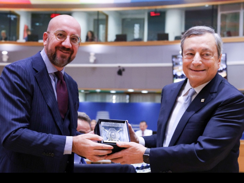Οι Ευρωπαίοι ηγέτες αποχαιρετούν τον Μάριο Ντράγκι, που αποχωρεί και τυπικά από την πρωθυπουργία της Ιταλίας, μετά τη νίκη του συνασπισμού της Μελόνι, και τον αποθεώνουν δια του προέδρου του Ευρωπαϊκού Συμβουλίου Σαρλ Μισέλ.