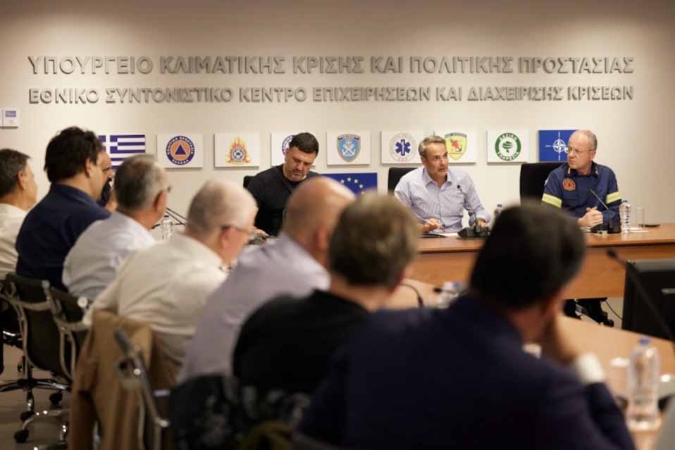 Η σύσκεψη πραγματοποιήθηκε στο υπουργείο Κλιματικής Κρίσης και σε αυτήν συμμετείχαν εκτός του πρωθυπουργού, και του αρμόδιου υπουργού κ. Βασίλη Κικίλια, οι κ.κ. υπουργοί, ΥΠΕΘΑ Νίκος Δένδιας, ΠΡΟ.ΠΟ. Μιχάλης Χρυσοχοΐδης, ΥΠΕΞ Γιώργος Γεραπετρίτης, υπουργός Εσωτερικών, Υγείας Αδωνις Γεωργιάδης, Θοδωρής Λιβάνιος, υπουργός Υποδομών Χρήστος Σταϊκούρας, ο περιφερειάρχης Αττικής Νίκος Χαρδαλιάς, ο υφυπουργός Κλιματικής Κρίσης, Χρήστος Τριαντόπουλος, υπουργός Ενέργειας, Θόδωρος Σκυλακάκης, ο διοικητής του ΕΛΓΑ, Ανδρέας Λυκουρέντζος, ο αρχηγός της ΕΛΑΣ Δημήτρης Μάλλιος, ο αρχηγός της Πυροσβεστικής Θοδωρής Βαγιάς, ο αρχηγός ΓΕΕΘΑ Δημήτρης Χούπης, οι υπουργοί Επικρατείς Μάκης Βορίδης και Άκης Σκέρτσος, ο υφυπουργός παρά τω πρωθυπουργώ Γιώργος Μυλωνάκης, ο κυβερνητικός εκπρόσωπος, Παύλος Μαρινάκης, ο υφυπουργός Κλιματικής Κρίσης, Ευάγγελος Τουρνάς, ο Διευθύνων Σύμβουλος του ΔΕΔΔΗΕ, Αναστάσιος Μάνος.