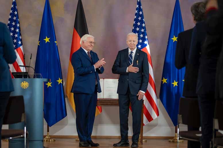 Ο αμερικανός πρόεδρος τιμήθηκε σήμερα με τον Μεγαλόσταυρο του Τάγματος της Αξίας, την υψηλότερη τιμητική διάκριση της Ομοσπονδιακής Γερμανίας.