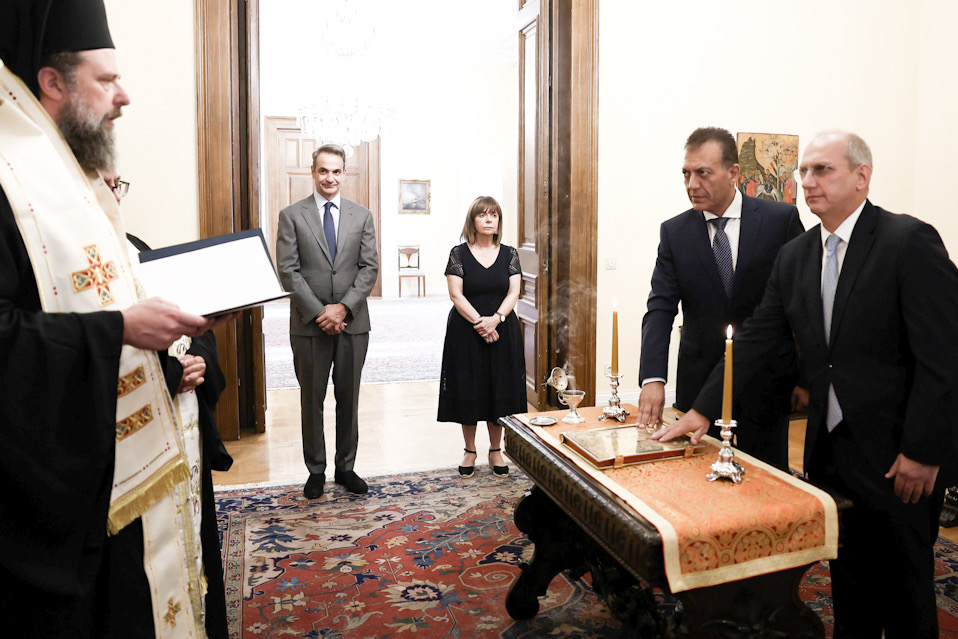 Ενώπιον της Προέδρου της Δημοκρατίας Κατερίνας Σακελλαροπούλου και παρουσία του πρωθυπουργού Κυριάκου Μητσοτάκη, ορκίσθηκαν από τον Επίσκοπο Ωρεών Φιλόθεο οι:
