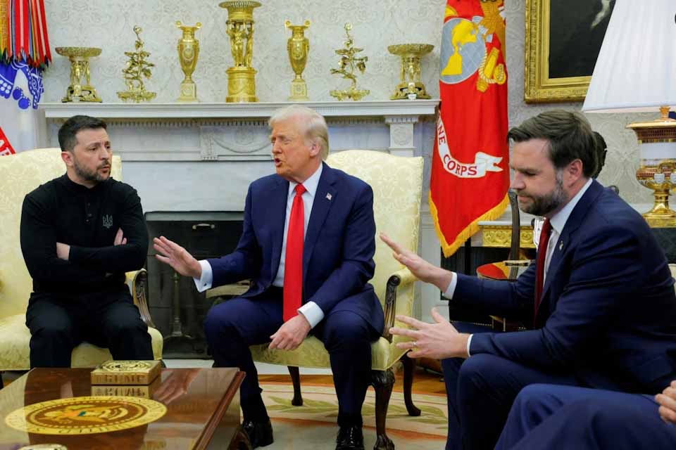 Σύμφωνα με δημοσιογράφους που βρίσκονται μέσα στην αίθουσα, ο πρόεδρος της Ουκρανίας, ο αντιπρόεδρος των ΗΠΑ Τζέι Ντι Βανς και ο Τραμπ έχουν εμπλακεί σε μια σειρά από τεταμένες ανταλλαγές απόψεων. Ο Βανς κατηγορεί τον Ζελένσκι ότι είναι «ασεβής». Στη συνέχεια, ο Τραμπ λέει ότι ο Ουκρανός ηγέτης «τζογάρει με τον Τρίτο Παγκόσμιο Πόλεμο».