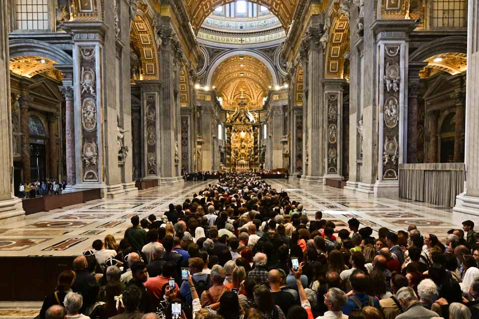 Σύμφωνα με εκτιμήσεις των αρχών,στην πλατεία του Αγίου Πέτρου και στους γύρω δρόμους βρίσκονται πάνω από 100.000 πιστοί οι οποίοι περιμένουν στην ουρά για να μπορέσουν να εισέλθουν στη βασιλική και να αποτίσουν φόρο τιμής στον εκλιπόντα ποντίφικα.