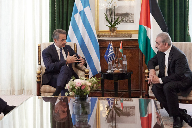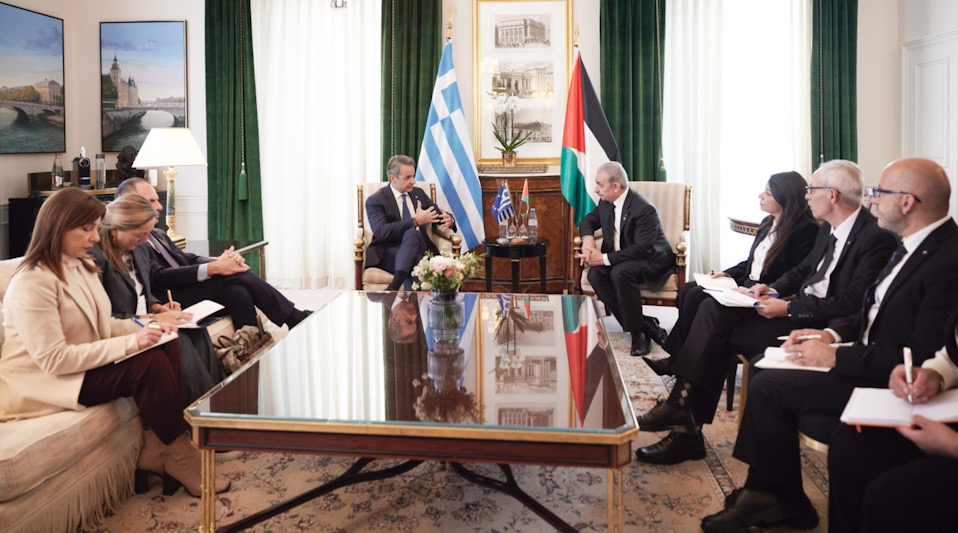 Ο Πρωθυπουργός Κυριάκος Μητσοτάκης συναντήθηκε το πρωί με τον Πρωθυπουργό της Παλαιστινιακής Αρχής Mohammad Ibrahim Shtayyeh, λίγο πριν συμμετάσχει στη Διεθνή Ανθρωπιστική Διάσκεψη για τους Αμάχους στη Γάζα, που πραγματοποιείται στο Παρίσι.