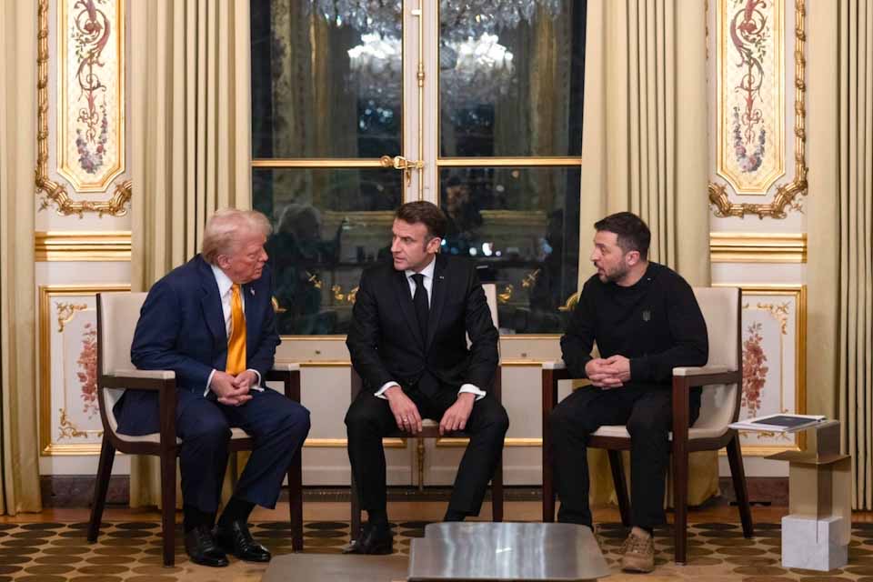 Τριμερής συνάντηση του Γάλλου προέδρου Εμανουέλ Μακρόν, του εκλεγέντος προέδρου των ΗΠΑ Ντόναλντ Τραμπ και του προέδρου της Ουκρανίας Βολοντιμίρ Ζελένσκι πραγματοποιήθηκε στο Παρίσι, στο Ελιζέ, λίγο πριν την έναρξη των εορταστικών εκδηλώσεων για την αναστήλωση της Παναγίας των Παρισίων.