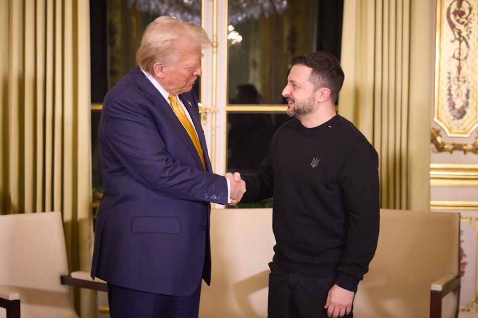 Ο εκλεγμένος πρόεδρος των Ηνωμένων Πολιτειών Ντόναλντ Τραμπ και ο Ουκρανός ομόλογός του Βολοντίμιρ Ζελένσκι αντάλλαξαν χειραψία στον προαύλιο χώρο του Μεγάρου των Ηλυσίων στο Παρίσι μετά την τριμερή συνάντηση με τον Εμανουέλ Μακρόν, σημείωσε δημοσιογράφος του Γαλλικού Πρακτορείου.