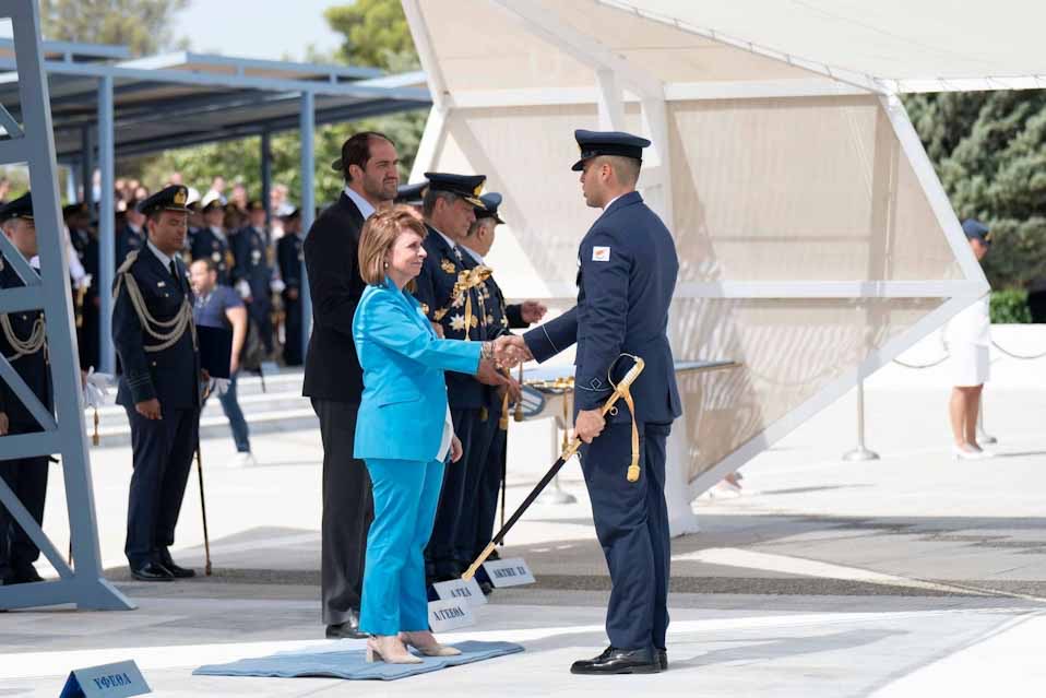 Την τελετή τίμησε με την παρουσία της η Α.Ε. η Προέδρος της Ελληνικής Δημοκρατίας κ. Αικατερίνη Σακελλαροπούλου, που επέδωσε και τα ξίφη στους ορκισθέντες Ανθυποσμηναγούς.