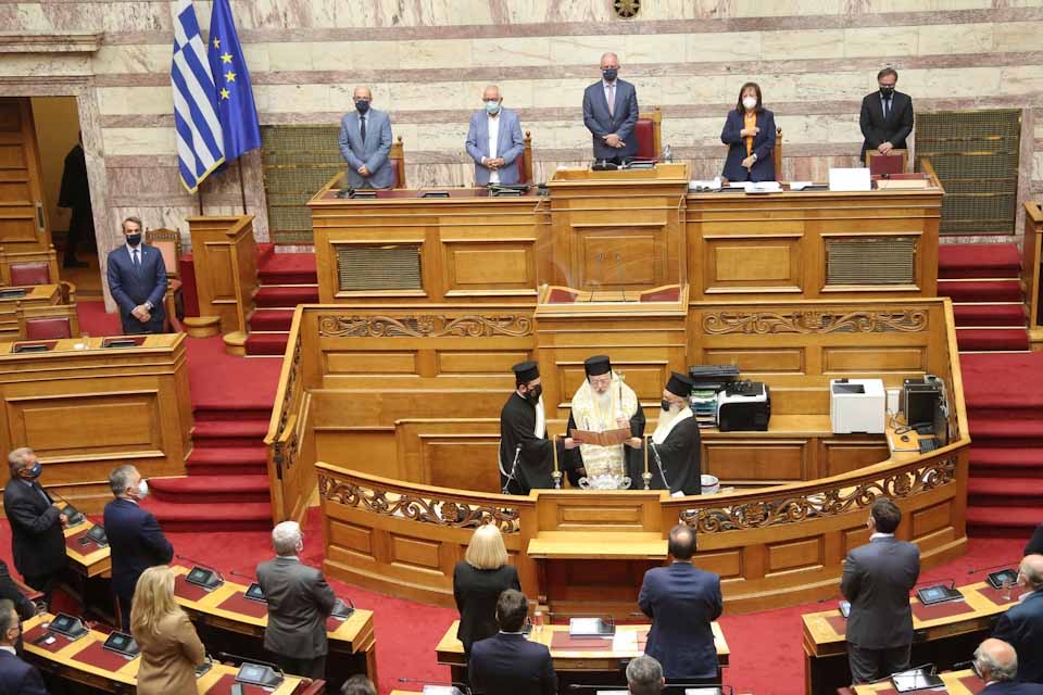 Με αγιασμό, που τέλεσε ο μητροπολίτης Κασσανδρείας Νικόδημος και μέλη της Διαρκούς Ιεράς Συνόδου, άρχισαν οι εργασίες της Γ’ Συνόδου της ΙΗ’ Βουλευτικής Περιόδου Προεδρευομένης Δημοκρατίας, παρουσία του πρωθυπουργού, Κυριάκου Μητσοτάκη, του αρχηγού της αξιωματικής αντιπολίτευσης, Αλέξη Τσίπρα και της προέδρου του Κινήματος Αλλαγής, Φώφης Γεννηματά.