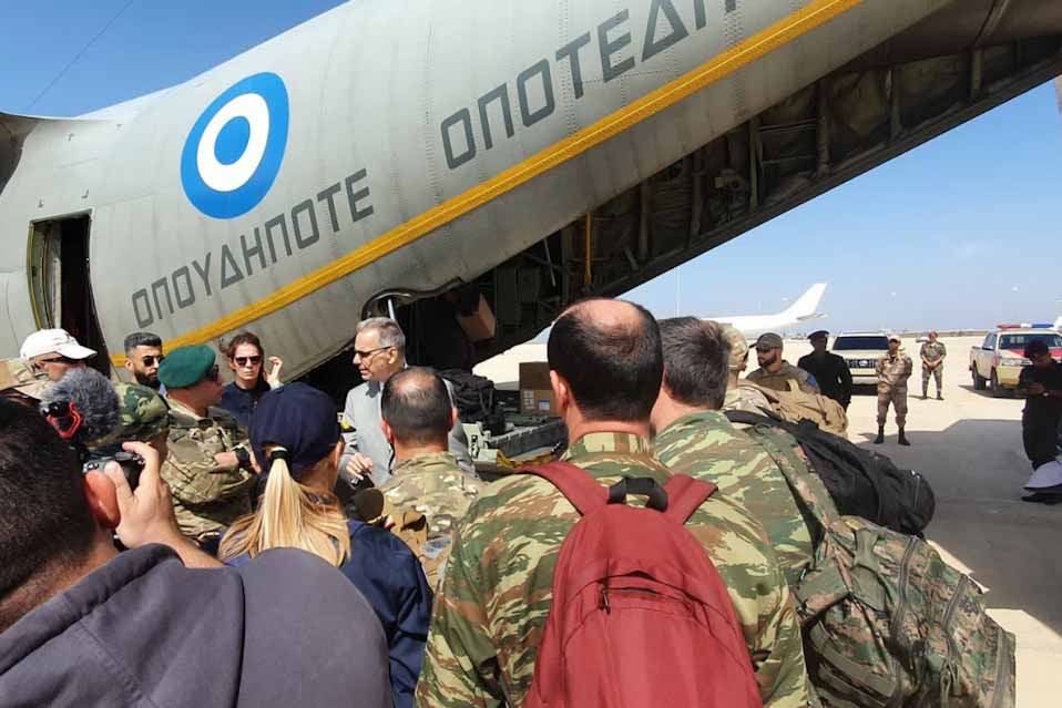 Αναμνηστική φωτογραφία των μελών της ελληνικής αποστολής κατά την αναχώρηση για τη Λιβύη την Κυριακή 17 Σεπτεμβρίου (ΓΡΑΦΕΙΟ ΤΥΠΟΥ ΓΕΕΘΑ/EUROKINISSI)
