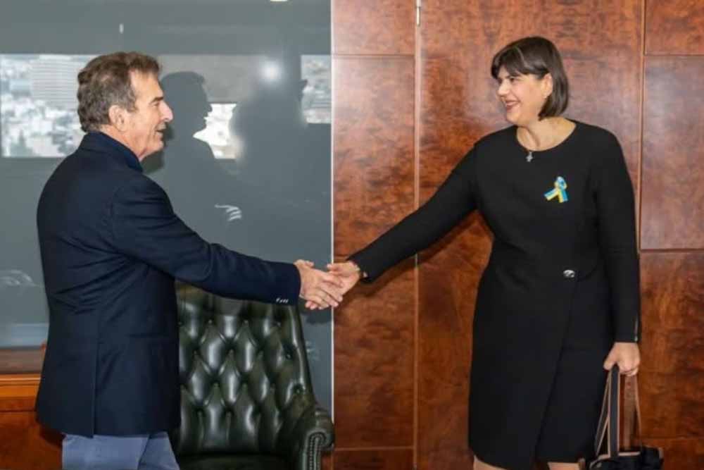 Ο Υπουργός Προστασίας του Πολίτη, Μιχάλης Χρυσοχοΐδης συναντήθηκε, σήμερα, Τετάρτη 1 Οκτωβρίου 2025, με την Ευρωπαία Γενική Εισαγγελέα, Λάουρα Κοβέσι, παρουσία του Αρχηγού της ΕΛ.ΑΣ Αντιστρατήγου, Δημητρίου Μάλλιου, του Επικεφαλής του Εκτελεστικού Γραφείου της Ευρωπαϊκής Εισαγγελίας, Milan Jaron και του Έλληνα Ευρωπαίου Εισαγγελέα, Νικολάου Πασχάλη.