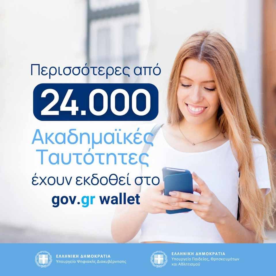 Ξεπέρασαν τις 24.000 οι Ακαδημαϊκές Ταυτότητες που έχουν αποθηκευτεί στο Gov.gr Wallet. Συγκεκριμένα, μέχρι στιγμής έχουν εκδοθεί και αποθηκευτεί 24.058 Ακαδημαϊκές Ταυτότητες για τα μέλη των ελληνικών Πανεπιστημίων (φοιτητές, διδάσκοντες, διοικητικό και τεχνικό προσωπικό), καθώς και το ερευνητικό, διοικητικό και τεχνικό προσωπικό ερευνητικών φορέων. Μέσα από τη νέα δυνατότητα, οι δικαιούχοι μπορούν να εκδίδουν γρήγορα και απλά τη νέα ψηφιακή Ακαδημαϊκή Ταυτότητα, να την αποθηκεύουν στο κινητό τους και να την επιδεικνύουν, όπου απαιτείται.