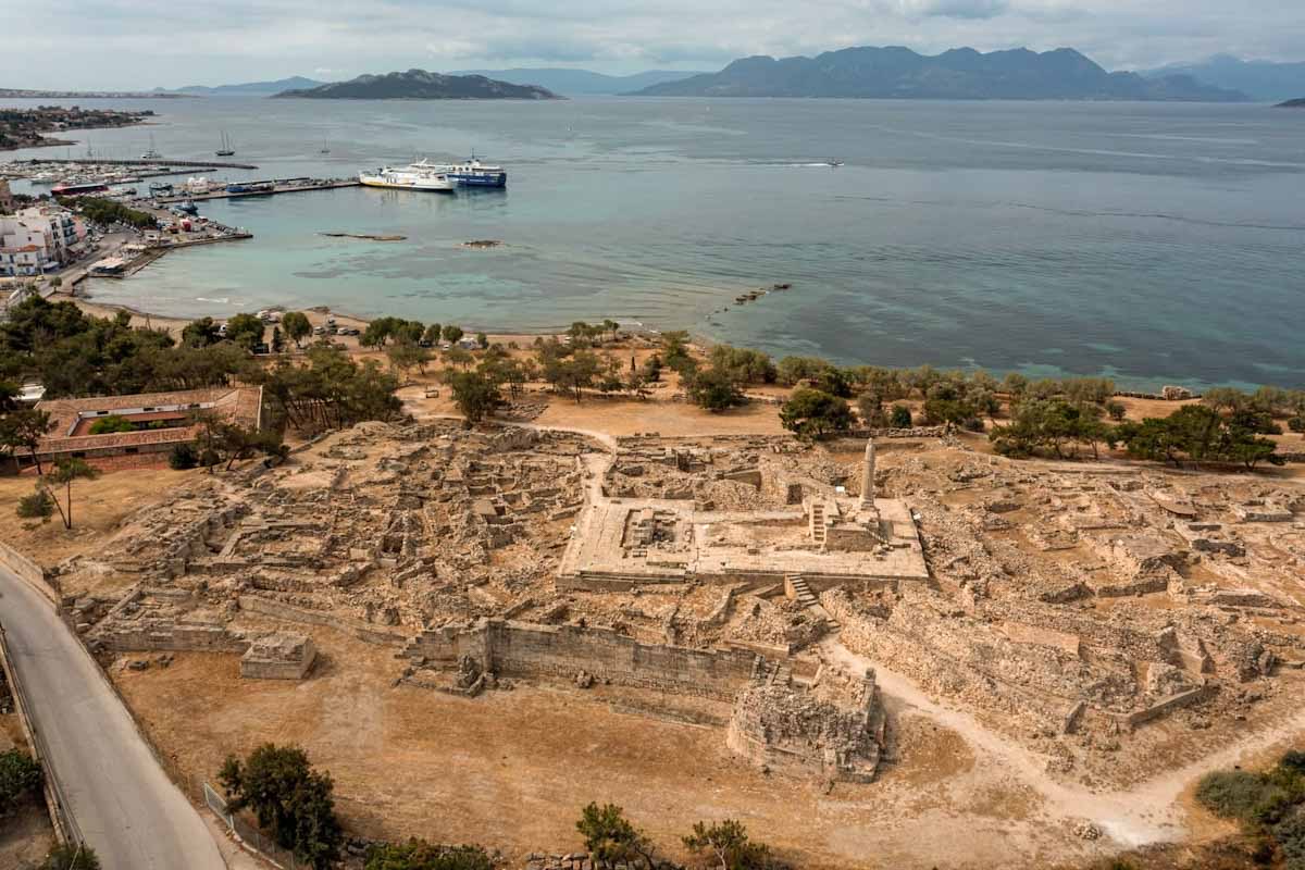 Ο αρχαιολογικός χώρος της Κολώνας βρίσκεται στη βορειοδυτική πλευρά του νησιού, κοντά στο λιμάνι και τη σύγχρονη πόλη της Αίγινας. Παρότι είναι κυρίως γνωστός για τον ναό του Απόλλωνα, του 6ου αι. π.Χ., ο λόφος της Κολώνας παρουσιάζει διαχρονική χρήση – προϊστορικός οικισμός, ιερό των ιστορικών χρόνων και ακρόπολη της αρχαίας πόλης, βυζαντινός οικισμός.