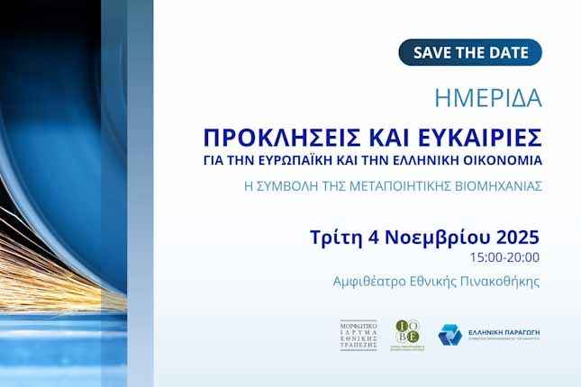 Κορυφαίοι πολιτικοί, ακαδημαϊκοί και εκπρόσωποι του επιχειρηματικού κόσμου θα συμμετάσχουν στην Ημερίδα με τίτλο «Προκλήσεις και Ευκαιρίες για την Ευρωπαϊκή και την Ελληνική Οικονομία – Η συμβολή της μεταποιητικής βιομηχανίας».