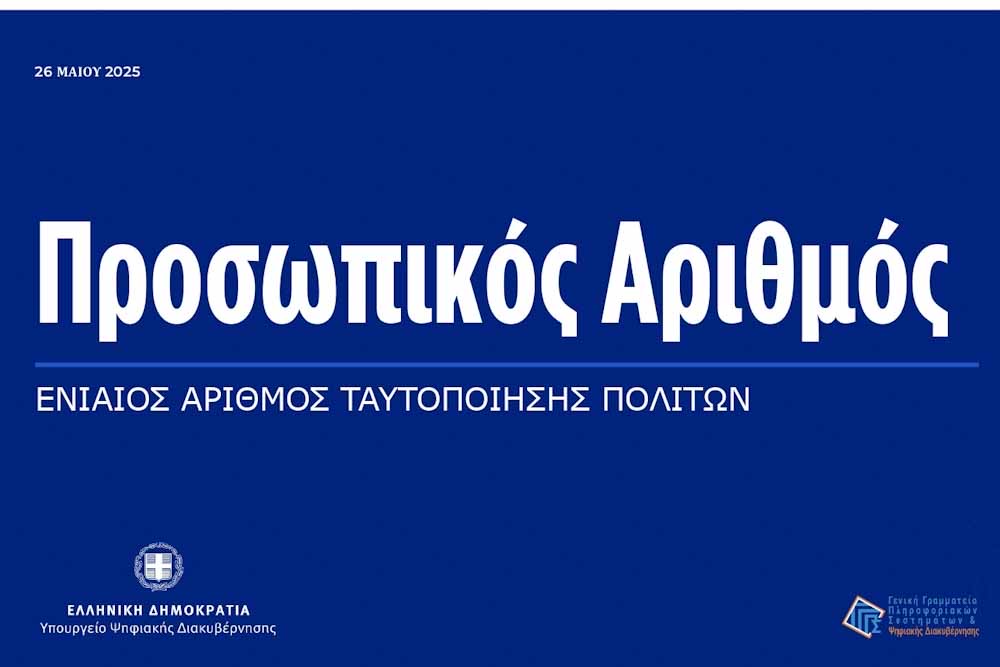 Οι πολίτες θα χρειάζεται να θυμούνται μόνο έναν αριθμό. Ο Προσωπικός Αριθμός θα είναι το «ψηφιακό κλειδί» για όλες τις υπηρεσίες του Δημοσίου και, σταδιακά, και για υπηρεσίες του ιδιωτικού τομέα.