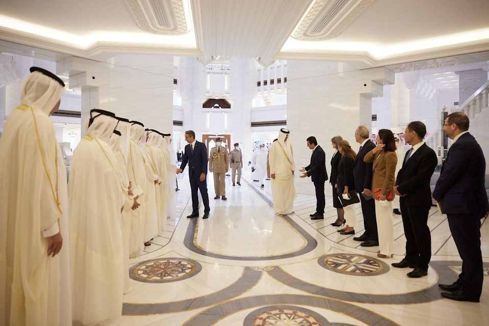 Συνάντηση του Πρωθυπουργού Κυριάκου Μητσοτάκη με τον Εμίρη του Κατάρ, Sheikh Tamim bin Hamad Al Thani στο παλάτι Amiri Diwan.