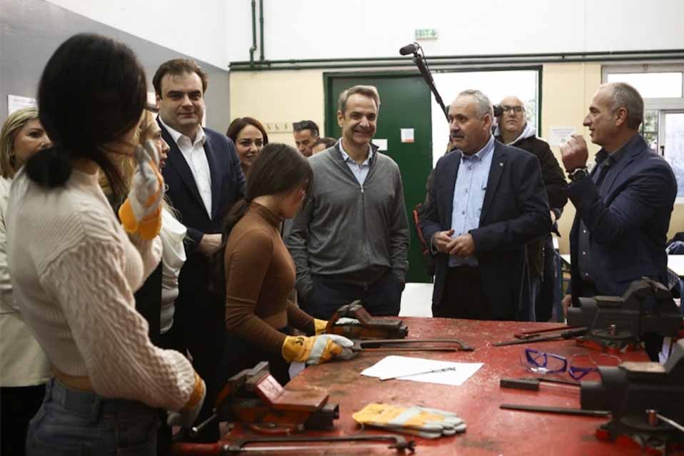 Ο Πρωθυπουργός Κυριάκος Μητσοτάκης επισκέφθηκε το πρωί το Πρότυπο Επαγγελματικό Λύκειο στο Πέραμα, όπου συζήτησε με μαθητές για τη νομοθετική πρωτοβουλία που ετοιμάζει η κυβέρνηση για την αναβάθμιση της επαγγελματικής εκπαίδευσης και κατάρτισης.