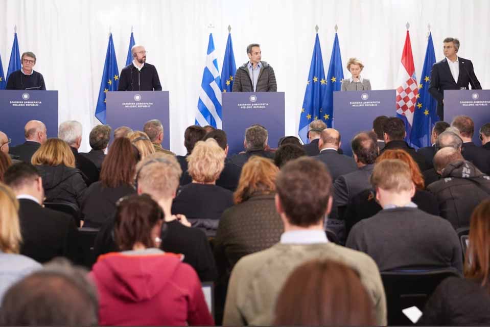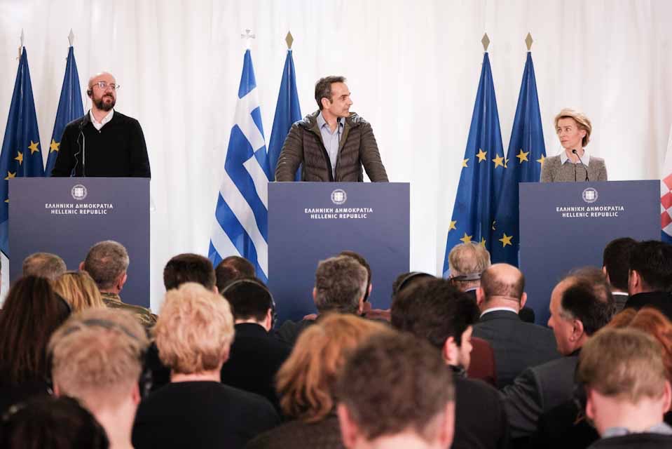 Αναλυτικα οι Δηλώσεις του Πρωθυπουργού Κυριάκου Μητσοτάκη στις Καστανιές Έβρου μετά την επίσκεψή του με τον Πρόεδρο του Ευρωπαϊκού Συμβουλίου Charles Michel, την Πρόεδρο της Ευρωπαϊκής Επιτροπής Ursula von der Leyen, τον Πρόεδρο του Ευρωπαϊκού Κοινοβουλίου David Sassoli και τον Πρωθυπουργό της Κροατίας Andrej Plenković μετά την επίσκεψή τους στα ελληνοτουρκικά σύνορα
