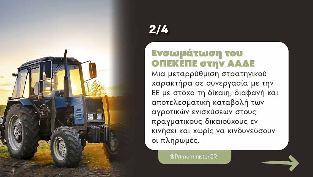 Αλλάζω θέμα και έρχομαι στη μεταρρύθμιση στον ΟΠΕΚΕΠΕ που προχωρά. Το Υπουργικό Συμβούλιο ενέκρινε το σχέδιο νόμου για την ενσωμάτωση του Ελληνικού Οργανισμού Πληρωμών Κοινοτικών Ενισχύσεων στην Ανεξάρτητη Αρχή Δημοσίων Εσόδων. Πρόκειται για μια μεταρρύθμιση στρατηγικού χαρακτήρα, η πιο δύσκολη μεταρρύθμιση που μπορώ να θυμηθώ, καθώς πρόκειται για μια πολύπλοκη και τολμηρή διαδικασία. Πρέπει να αλλάξει εν κινήσει ένα άρρωστο σύστημα και ταυτόχρονα να μην διακινδυνεύσουν οι πληρωμές. Στο εξής, η ΑΑΔΕ θα έχει την διαχείριση των 2 ευρωπαϊκών ταμείων -του Ευρωπαϊκού Γεωργικού Ταμείου Εγγυήσεων και του Ευρωπαϊκού Γεωργικού Ταμείου Αγροτικής Ανάπτυξης. Το προσωπικό του Οργανισμού απορροφάται από την Ανεξάρτητη Αρχή και με την εποπτεία της θα γίνει η αξιολόγησή τους. Είναι μια πρόκληση που θα την κερδίσουμε. Διαβεβαιώνω τους αγρότες μας ότι καταβάλλουμε κάθε δυνατή προσπάθεια για να επιταχύνουμε την καταβολή των αποζημιώσεων.
