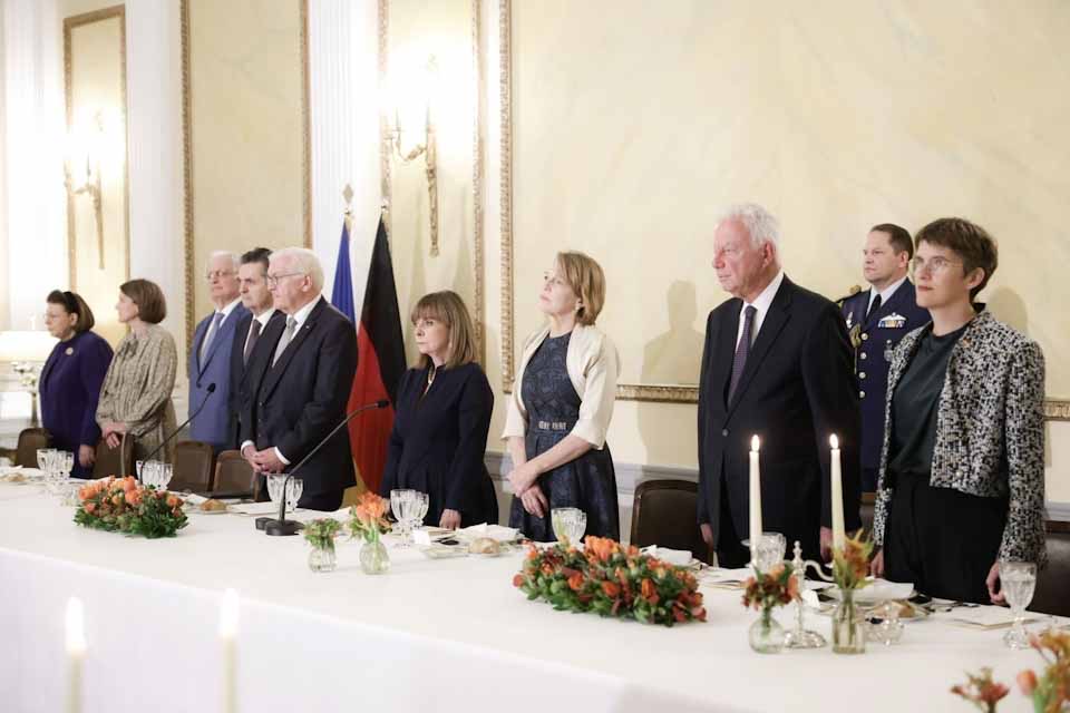 Η κυρία Σακελλαροπούλου, απευθυνόμενη στον Γερμανό Πρόεδρο και την σύζυγό του, σημείωσε ότι η επίσκεψή τους αποτελεί επιστέγασμα των στενών δεσμών φιλίας που συνδέουν τους δύο λαούς, καθώς και της εποικοδομητικής συνεργασίας μας σε όλους τους τομείς και πρόσθεσε ότι τους υποδέχεται με ιδιαίτερη χαρά στην Αθήνα, σε ανταπόδοση της επίσκεψής της στο Βερολίνο, πριν από δύο χρόνια, από την οποία διατηρεί άριστες αναμνήσεις.