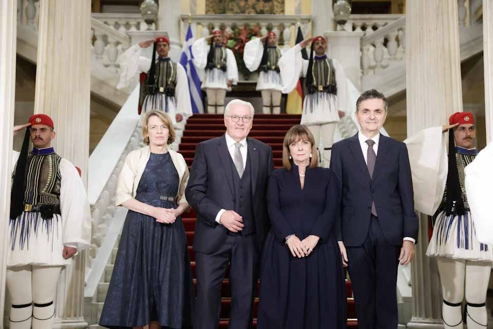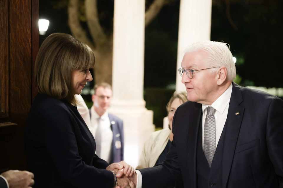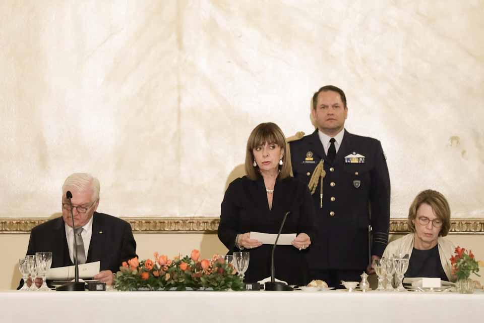 «Η Ελλάδα αποτελεί εγγυητή ασφάλειας και σταθερότητας στην ανατολική Μεσόγειο και την ευρύτερη περιοχή, συμμερίζεται τις κοινές αξίες που ενσαρκώνει η Ευρώπη και αγωνίζεται για την προώθηση και εμβάθυνσή τους» τόνισε η Πρόεδρος της Δημοκρατίας, Κατερίνα Σακελλαροπούλου, κατά την προσφώνησή της στο επίσημο δείπνο που παρέθεσε προς τιμήν του Γερμανού Προέδρου, Φράνκ-Βάλτερ Σταϊνμάιερ, ο οποίος πραγματοποιεί επίσημη επίσκεψη στη χώρα μας.