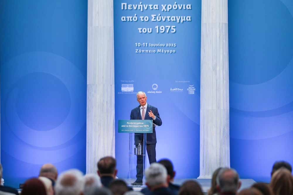 «Θα ήθελα καταρχάς να συγχαρώ το Κύκλο Ιδεών, ο οποίος σε συνεργασία με τη διαΝΕΟσις και το Οικονομικό Φόρουμ των Δελφών και με την υποστήριξη των εκδόσεων Σάκουλα, διοργάνωσε αυτό το εξαιρετικά επιτυχημένο διήμερο συνέδριο για τα 50 χρόνια του Συντάγματος του 1975.