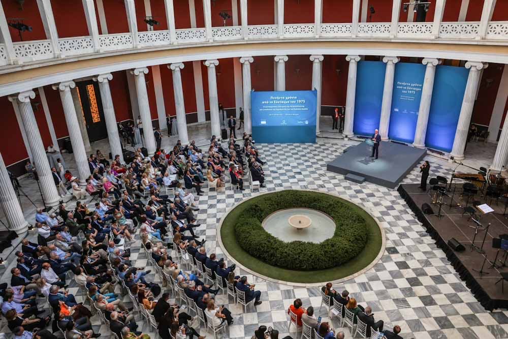 Ο Πρόεδρος της Δημοκρατίας Κωνσταντίνος Αν. Τασούλας κήρυξε τη λήξη του συνεδρίου «Πενήντα χρόνια από το Σύνταγμα του 1975. Η συνταγματική υπόσχεση της Μεταπολίτευσης και η ποιότητα της Δημοκρατίας και του Κράτους Δικαίου», που διοργάνωσε στο Ζάππειο Μέγαρο, ο Κύκλος Ιδεών σε συνεργασία με τη διαΝΕΟσις και το Οικονομικό Φόρουμ των Δελφών.