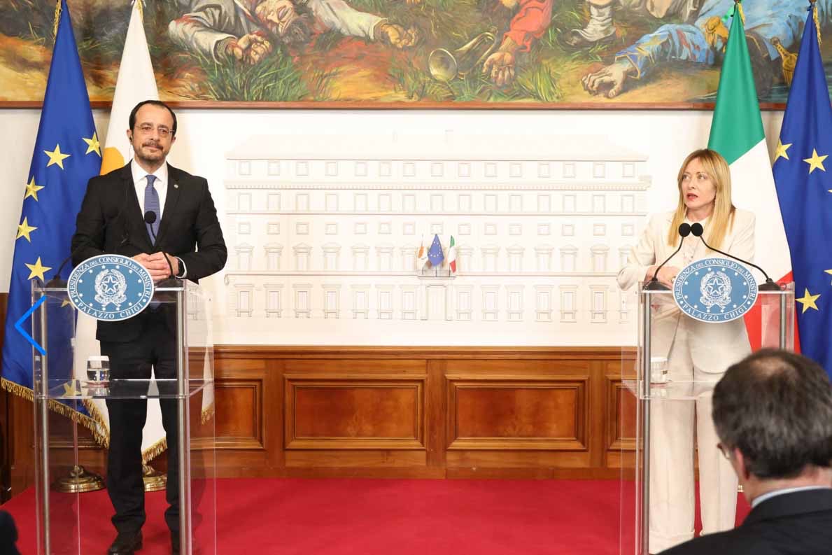Η κα Meloni είπε εξάλλου ότι με τον Πρόεδρο Χριστοδουλίδη εργάστηκαν μαζί για τα θέματα προώθησης της προστασίας των εξωτερικών συνόρων της ΕΕ και καταπολέμησης της παράνομης μαζικής μετανάστευσης.