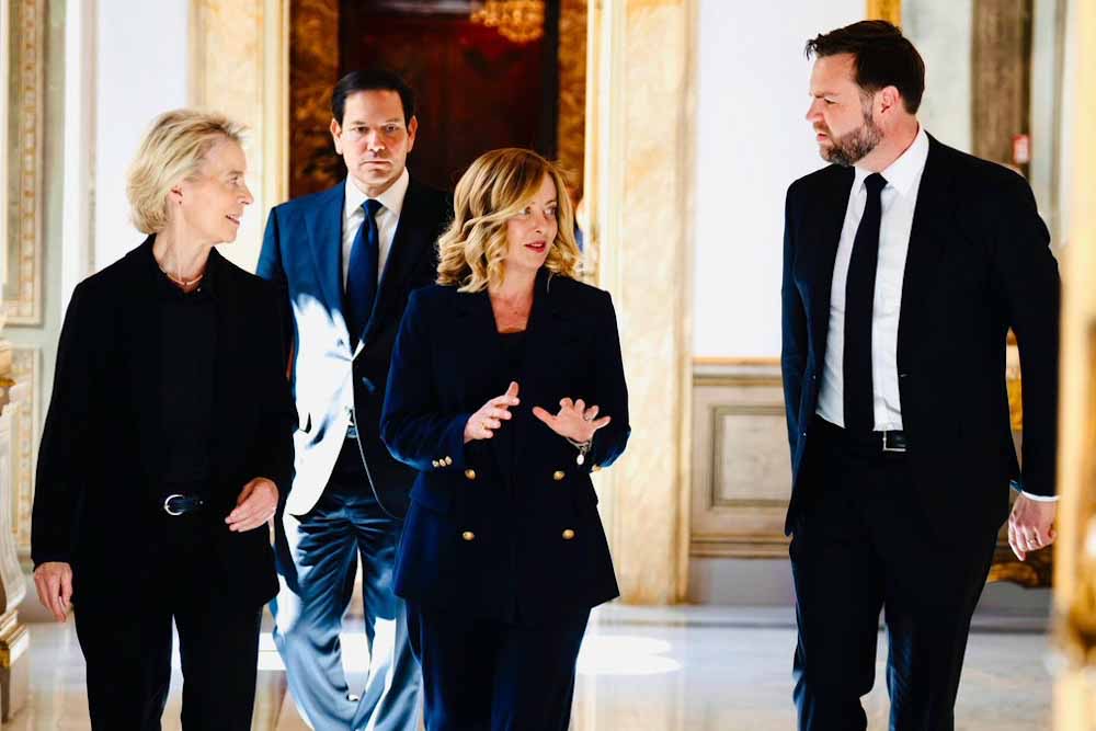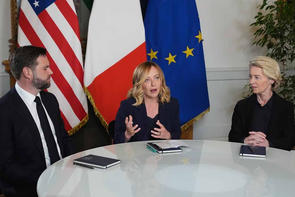 Ο αντιπρόεδρος των ΗΠΑ Τζέι Ντι Βανς συναντήθηκε με την πρόεδρο της Ευρωπαϊκής Επιτροπής Ούρσουλα φον ντερ Λάιεν και την πρωθυπουργό της Ιταλίας Τζόρτζια Μελόνι σήμερα και είπε πως ελπίζει ότι η συνάντησή τους θα βοηθήσει στην προώθηση των εμπορικών συνομιλιών μεταξύ της ΕΕ και των ΗΠΑ.