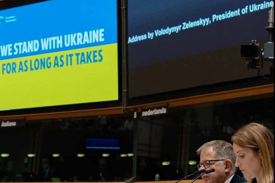 Η πρόεδρος του Ευρωπαϊκού Κοινοβουλίου Ρομπέρτα Μέτσολα και οι περισσότεροι από τους αρχηγούς των πολιτικών ομάδων, με εξαίρεση την ακροδεξιά ομάδα «Πατριώτες για την Ευρώπη», επανέλαβαν τη δέσμευση της ΕΕ να συνεχίσει να «στέκεται στο πλευρό της Ουκρανίας για όσο χρειαστεί».