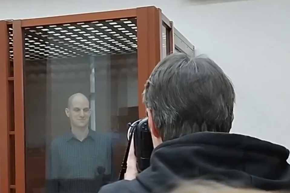 Αμερικανός δημοσιογράφος Έβαν Γκέρσκοβιτς παρουσιάστηκε στο δικαστήριο όπου σήμερα αρχίζει η δίκη του κεκλεισμένων των θυρών στην πόλη Γεκατερίνμπουργκ της Ρωσίας με την κατηγορία της κατασκοπείας, την οποία ο ίδιος αρνείται.