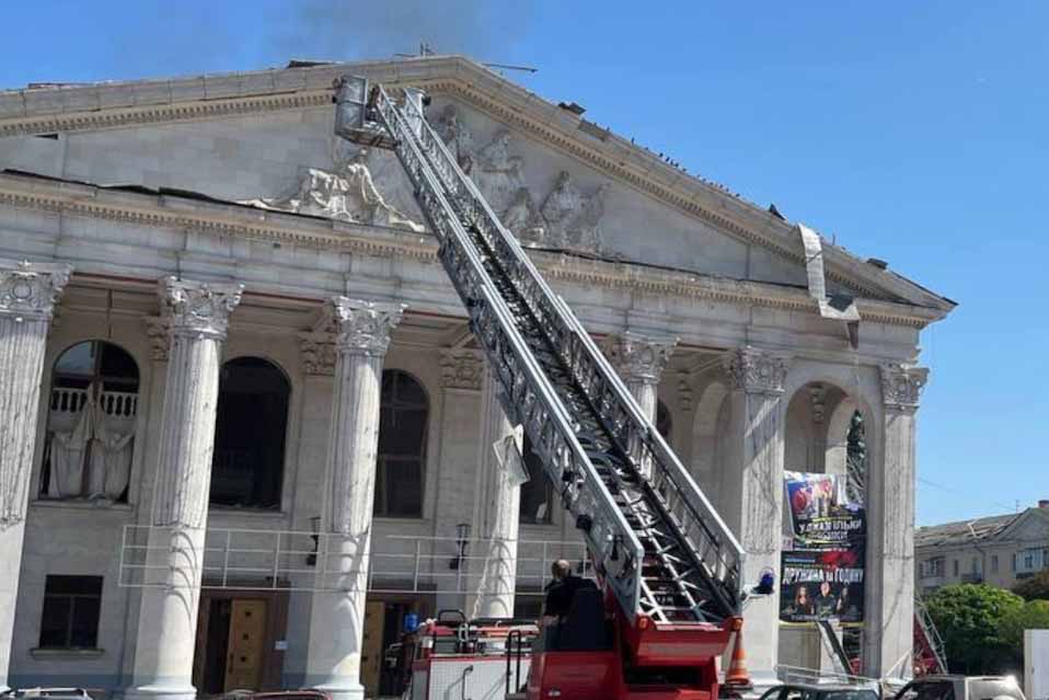 Το υπουργείο Εσωτερικών ανακοίνωσε ότι από το πυραυλικό πλήγμα καταστράφηκε η οροφή του θεάτρου.