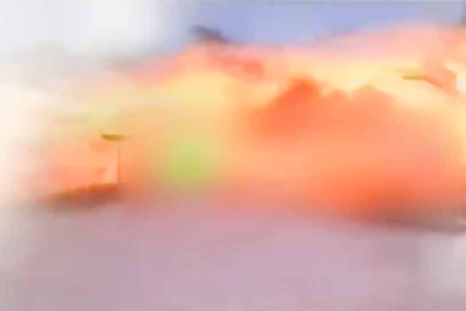 Στο βίντεο αυτό μικρής διάρκειας διακρίνονται συντρίμμια διάσπαρτα σε μια πλατεία μπροστά από ένα κτίριο που φαίνεται ότι είναι το θέατρο της πόλης με κατεστραμμένα σταθμευμένα αυτοκίνητα.