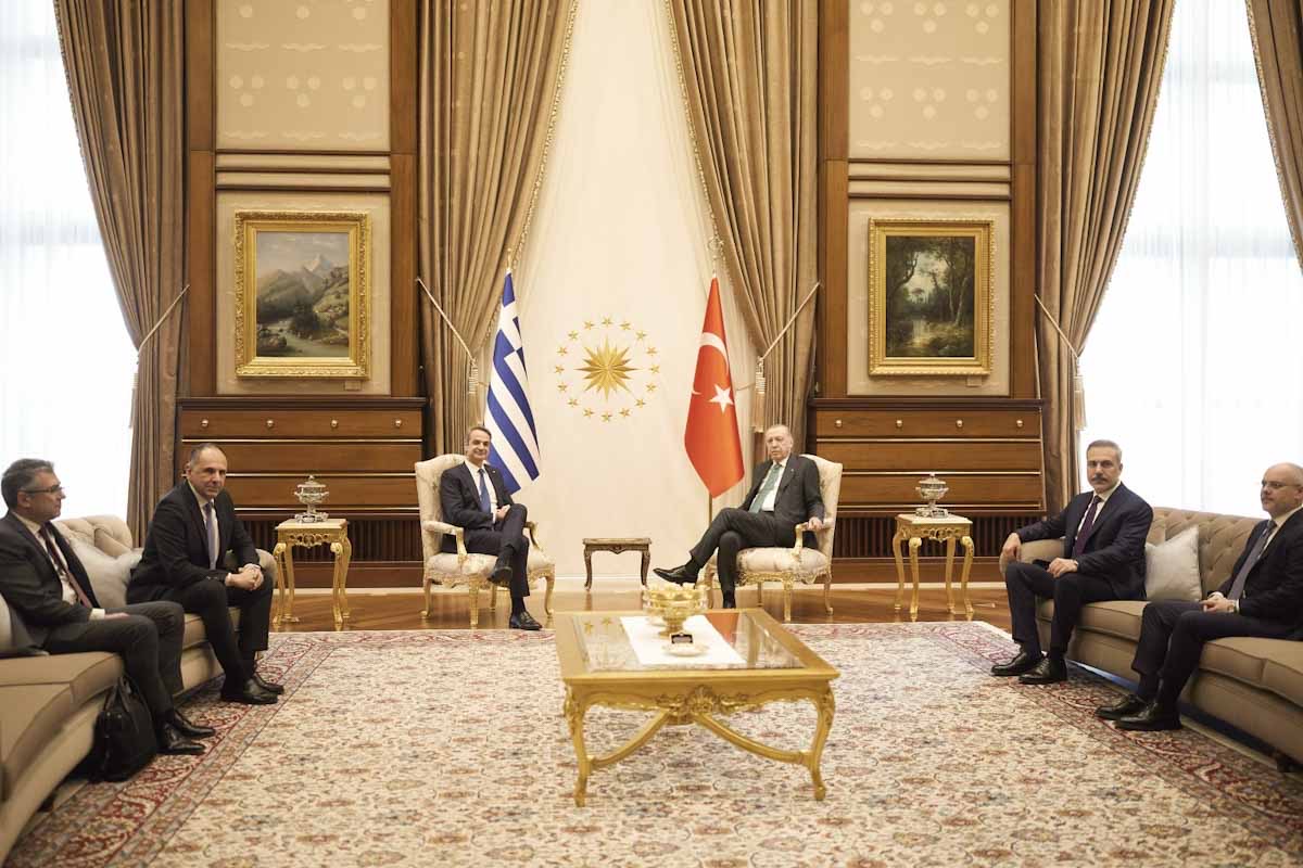 Σε εξέλιξη βρίσκεται η συνάντηση του πρωθυπουργού Κυριάκου Μητσοτάκη με τον Τούρκο Πρόεδρο Ρετζέπ Ταγίπ Ερντογάν, στην Άγκυρα.