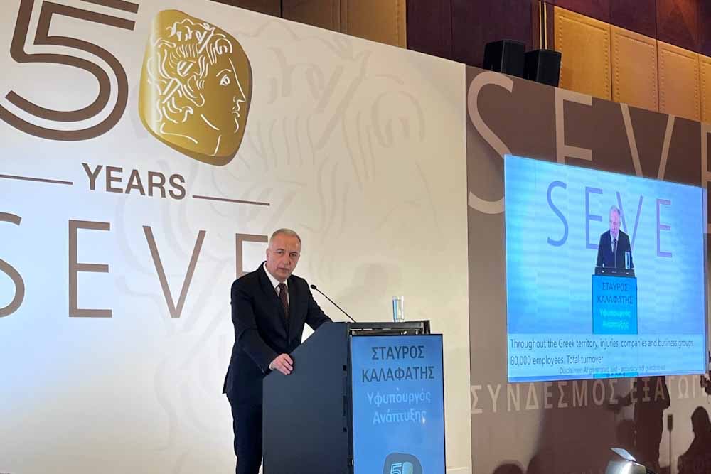 Ο κ. Καλαφάτης χαρακτήρισε τον ΣΕΒΕ “κορυφαίο εξαγωγικό φορέα της χώρας μας ο οποίος υπήρξε- και συνεχίζει να είναι- πυλώνας ανάπτυξης για τη Θεσσαλονίκη και την ευρύτερη περιοχή της Μακεδονίας”, επισημαίνοντας ότι: “Σ΄όλη την ελληνική επικράτεια 800 εταιρείες και επιχειρηματικοί όμιλοι, 80 χιλιάδες εργαζόμενοι, συνολικός κύκλος εργασιών που υπερβαίνει τα 55 δισεκατομμύρια ευρώ και εξαγωγές που φθάνουν τα 30 δισεκατομμύρια ευρώ, δηλαδή το 50% των ελληνικών εξαγώγιμων αγαθών, δεν είναι μόνο αριθμοί”. Όπως τόνισε: “Είναι η ζωντανή απόδειξη της Ελλάδας της εξωστρέφειας, της δημιουργίας, της καινοτομίας. O ΣΕΒΕ είναι πρωταγωνιστής αλλά και σύμμαχός μας στον κοινό αγώνα για σταθερή ανάπτυξη, για βιώσιμη απασχόληση, για μια ανθεκτική και δυναμική οικονομία”,υπογράμμισε ο Υφυπουργός Ανάπτυξης.