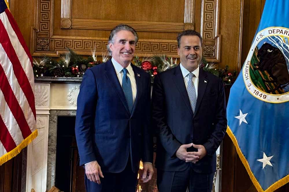 «Η χώρα μας είναι ενεργειακός κόμβος και αξιόπιστος τόπος επενδύσεων για τις αμερικανικές εταιρείες», ανέφερε ο Υπουργός Περιβάλλοντος και Ενέργειας, κ. Σταύρος Παπασταύρου, σε δηλώσεις του μετά την συνάντηση που είχε σήμερα στην Ουάσιγκτον με τον Υπουργό Εσωτερικών των ΗΠΑ και Επικεφαλής του National Energy Dominance Council, κ. Doug Burgum στο Υπουργείο Εσωτερικών.