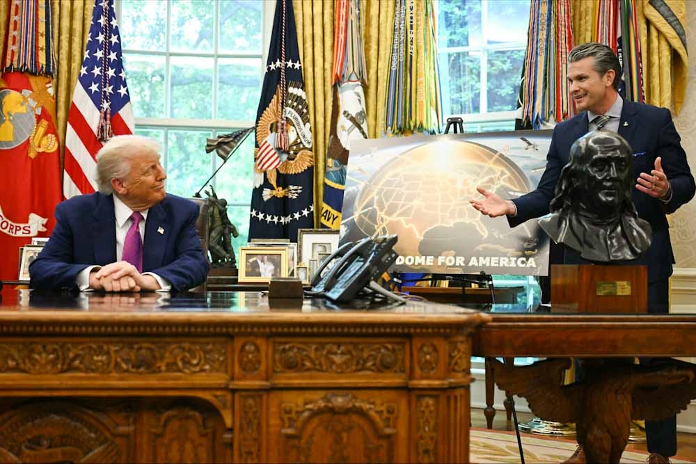 Την ίδια ώρα, ο Ντόναλντ Τραμπ δήλωνε ότι «τα πάντα» στο αντιπυραυλικό σύστημα άμυνας Golden Dome θα κατασκευαστούν στις ΗΠΑ, προσθέτοντας ότι του έργου θα ηγηθεί ο στρατηγός Μάικλ Γκέτλεϊν, αναπληρωτής αρχηγός διαστημικών επιχειρήσεων.