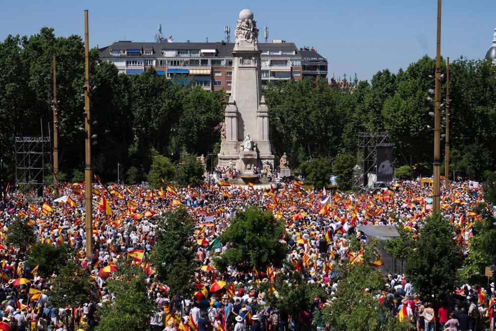 Η κυβέρνηση αυτή τα βρώμισε όλα — την πολιτική, τους κρατικούς θεσμούς, τη διάκριση των εξουσιών”, είπε κατά τη συγκέντρωση προτού καλέσει τον Πέδρο Σάντσεθ να “υποταχθεί στη δημοκρατία” και να προκηρύξει πρόωρες εκλογές.