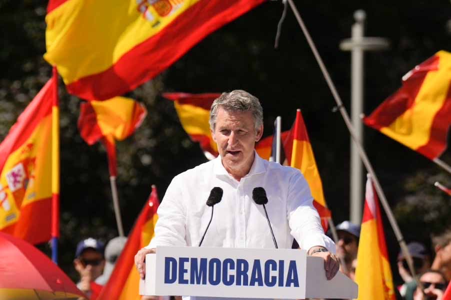 Η κυβέρνηση αυτή τα βρώμισε όλα — την πολιτική, τους κρατικούς θεσμούς, τη διάκριση των εξουσιών”, είπε κατά τη συγκέντρωση προτού καλέσει τον Πέδρο Σάντσεθ να “υποταχθεί στη δημοκρατία” και να προκηρύξει πρόωρες εκλογές.