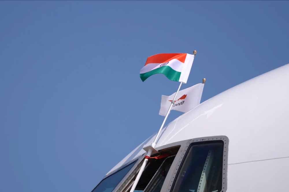 Λίγο πριν τις 14:30 προσγειώθηκε στο Αεροδρόμιο «Γλαύκος Κληρίδης» το αεροσκάφος που μετέφερε τον Πρωθυπουργό της Ινδίας Ναρέντρα Μόντι στην Κύπρο, ο οποίος γίνεται δεκτός με τις απαραίτητες τιμές.
