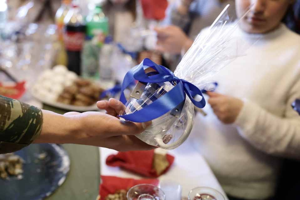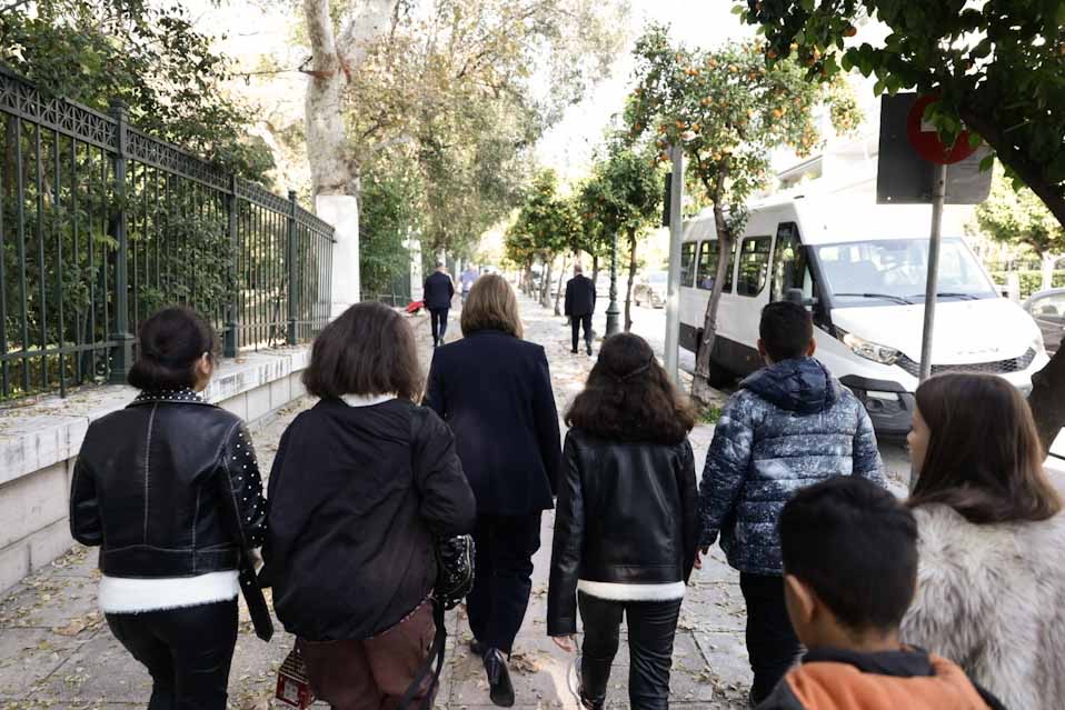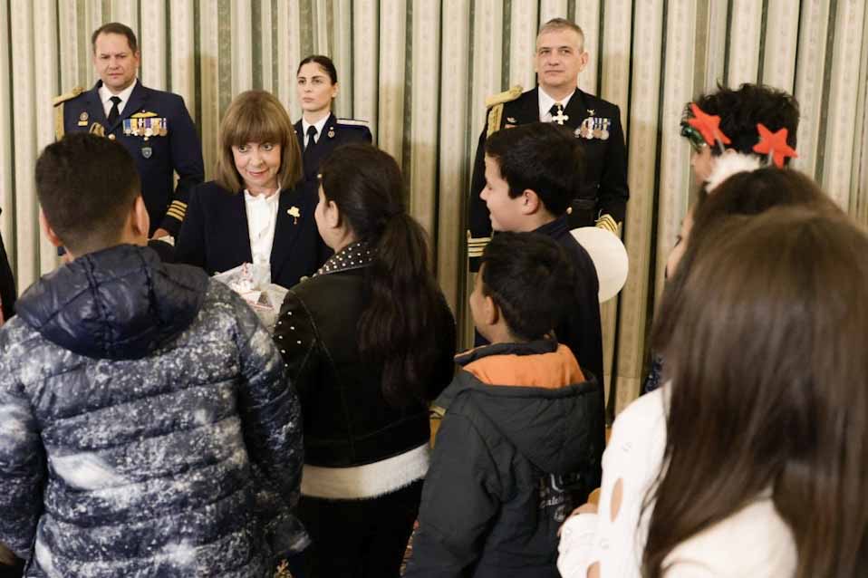 Παρόντα και 15 παιδιά των Παιδικών Χωριών SOS, ηλικίας 12 – 13 ετών, τα οποία χάρισαν ένα καραβάκι στην κυρία Κατερίνα Σακελλαροπούλου και εκείνη με τη σειρά της, τους έδωσε γούρια για το νέο έτος. Πρόεδρος και παιδιά φωτογραφήθηκαν μπροστά από το χριστουγεννιάτικο δέντρο του Προεδρικού Μεγάρου, με την κυρία Κατερίνα Σακελλαροπούλου να εύχεται παραλλήλως στους εκπροσώπους των μέσων ενημέρωσης, καλή χρονιά και ειρήνη.