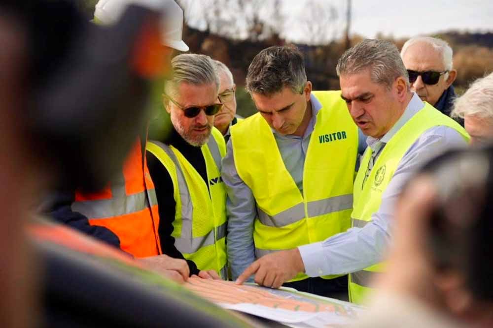 Ο υπουργός Υποδομών και Μεταφορών Χρίστος Δήμας κατά την αυτοψία που πραγματοποίησε πρόσφατα στο εργοτάξιο του τμήματος του αυτοκινητόδρομου Μιντιλόγλι – Αλισσός.
