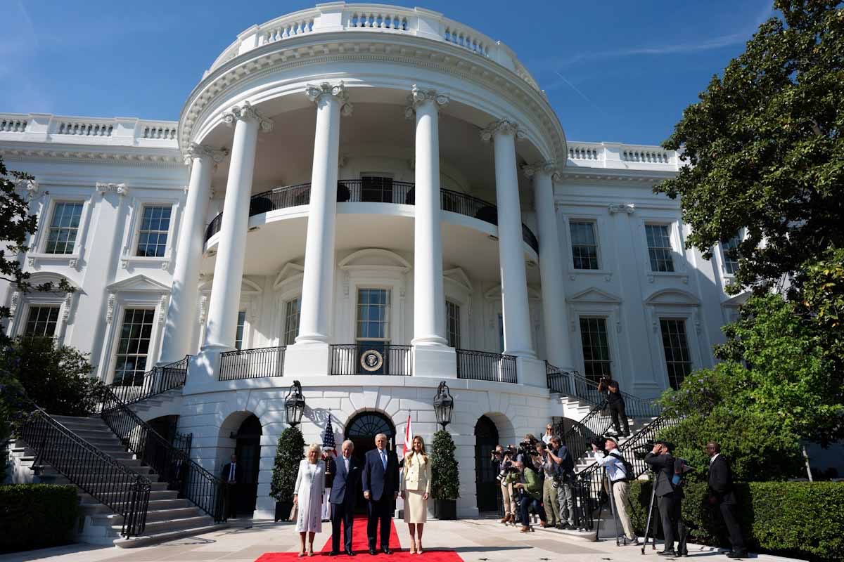 Ο Αμερικανός Πρόεδρος Ντόναλντ Τραμπ και η πρώτη κυρία Μελάνια Τραμπ υποδέχθηκαν τον Βασιλιά Κάρολο Γ΄ και τη Βασίλισσα Καμίλα κατά την άφιξή τους στον Λευκό Οίκο.