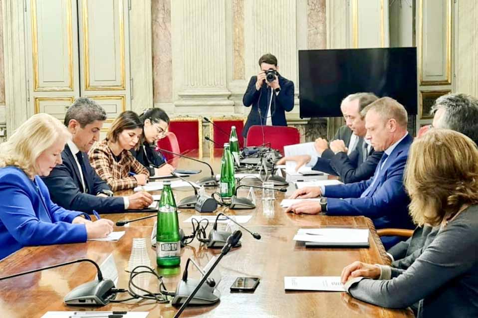 Κατά τη διάρκεια της συνάντησης, που έγινε σε ιδιαίτερα θερμό κλίμα, ο Ιταλός υπουργός εξέφρασε την υποστήριξη και την αλληλεγγύη του στην Ελλάδα για τις μεγάλες καταστροφές και πλημμύρες που υπέστη η χώρα στη Θεσσαλία και, επίσης, εξέφρασε την λύπη του που δεν κατάφερε να παρευρεθεί στη Θεσσαλία στις 9 Νοεμβρίου. Έκανε αναφορά και στις φυσικές καταστροφές που έχει η υποστεί η χώρα του στην περιοχή της Εμίλια-Ρομάνια και στην Τοσκάνη, αναγνωρίζοντας ότι δεν συγκρίνονται με τις καταστροφές στη Θεσσαλία.