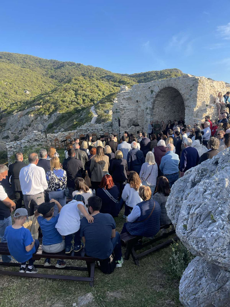 Οι στιγμές ήταν εξαιρετικά συγκινητικές αφού στον χώρο του Κάστρου μεταφέρθηκε για πρώτη φορά και η εικόνα της Παναγιάς Κουνίστρας, που είναι και πολιούχος προστάτιδα του νησιού.