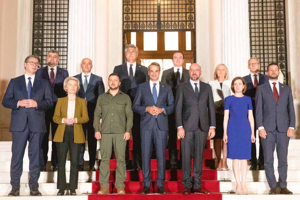 - Σήμερα στην Αθήνα συζητήσαμε τον δρόμο προς τα εμπρός, προκειμένου να γίνει πραγματικότητα αυτό το όραμα της Ευρώπης. Υπογραμμίσαμε τη σημασία του να θέσουμε ως στόχο την ολοκλήρωση του οράματος μιας ΕΕ εμπλουτισμένης με τα Δυτικά Βαλκάνια, την Ουκρανία και τη Δημοκρατία της Μολδαβίας. Υπογραμμίσαμε την ανάγκη για μια ανανεωμένη και εστιασμένη εκ νέου διαδικασία διεύρυνσης που να είναι απτή και αξιόπιστη, χωρίς συντομεύσεις προς τις καθορισμένες συνθήκες. Εκφράσαμε τη δέσμευσή μας να υποστηρίξουμε την Ουκρανία και τη Μολδαβία να κάνουν τα επόμενα βήματα στην ενταξιακή τους διαδικασία μόλις ολοκληρώσουν τις απαραίτητες μεταρρυθμίσεις.
