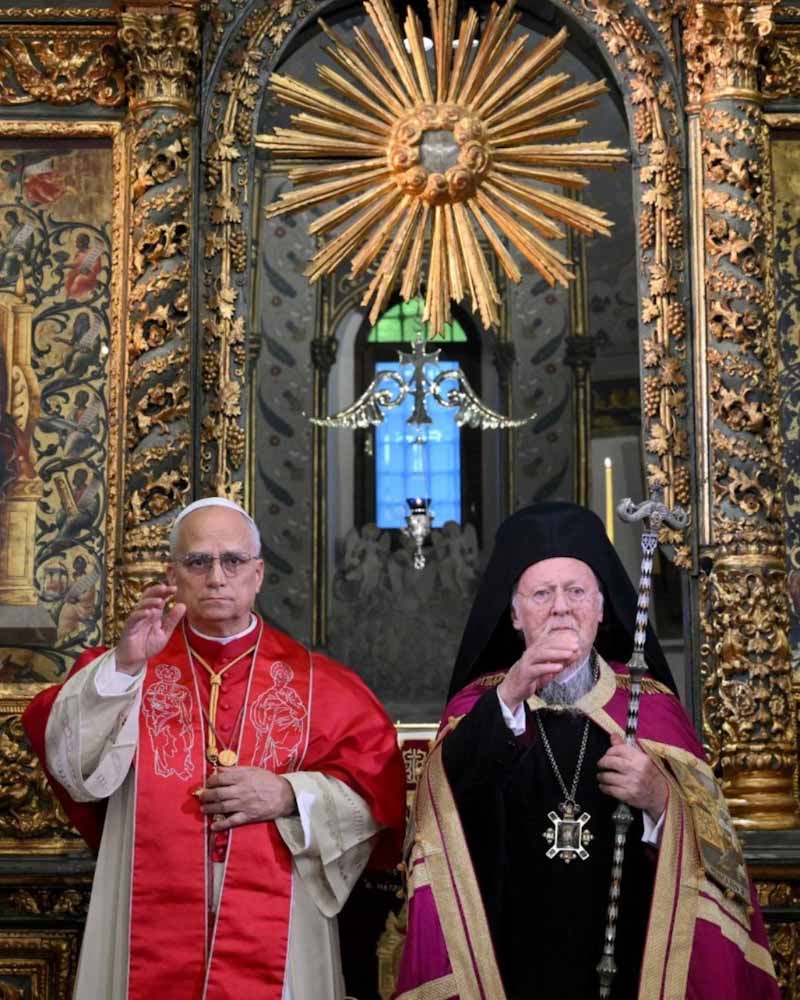 Την παραμονή της εορτής του Αγίου Ανδρέα του Πρώτου Αποστόλου, αδελφού του Αποστόλου Πέτρου και προστάτη του Οικουμενικού Πατριαρχείου, εμείς, ο Πάπας Λέων XIV και ο Οικουμενικός Πατριάρχης Βαρθολομαίος, ευχαριστούμε από καρδιάς τον Θεό, τον ελεήμονα Πατέρα μας, για το δώρο αυτής της αδελφικής συνάντησης. Ακολουθώντας το παράδειγμα των σεβάσμιων προκατόχων μας και υπακούοντας στη θέληση του Κυρίου μας Ιησού Χριστού, συνεχίζουμε να βαδίζουμε με σταθερή αποφασιστικότητα στον δρόμο του διαλόγου, με αγάπη και αλήθεια (βλ. Εφ 4, 15), προς την πολυπόθητη αποκατάσταση της πλήρους κοινωνίας μεταξύ των αδελφών Εκκλησιών μας. Συνειδητοποιώντας ότι η χριστιανική ενότητα δεν είναι απλώς αποτέλεσμα ανθρώπινων προσπαθειών, αλλά δώρο που προέρχεται από ψηλά, καλούμε όλα τα μέλη των Εκκλησιών μας – κληρικούς, μοναχούς, αφιερωμένους και πιστούς λαϊκούς – να επιδιώξουν με ζήλο την εκπλήρωση της προσευχής που ο Ιησούς Χριστός απηύθυνε στον Πατέρα: «για να είναι όλοι ένα, όπως εσύ, Πατέρα, είσαι σε μένα και εγώ σε σένα… ώστε να πιστέψει ο κόσμος» (Ιω 17, 21).