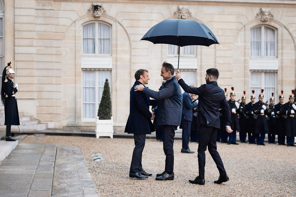 Λίγo μετά τις 18:00 ο πρωθυπουργός Κυριάκος Μητσοτάκης έφτασε στο Μέγαρο των Ηλυσίων, στο Παρίσι, για να συμμετάσχει στη διάσκεψη που διοργανώνει ο Πρόεδρος της Γαλλίας Εμανουέλ Μακρόν για τη στήριξη της Ουκρανίας. Τον Κυριάκο Μητσοτάκη υποδέχθηκε στο κατώφλι του Μεγάρου Ελιζέ ο Εμανουέλ Μακρόν.