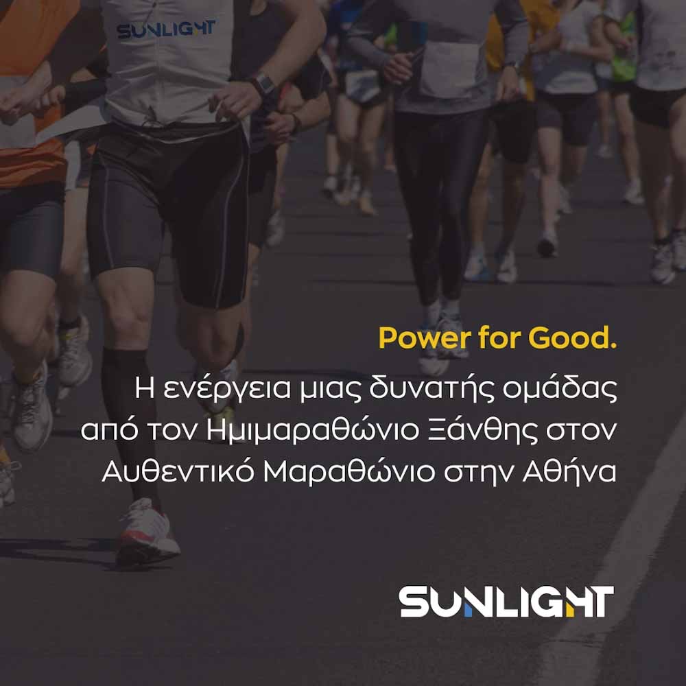 Η Sunlight Group, μέλος του Ομίλου Olympia και εταιρεία τεχνολογίας με ολοκληρωμένες και καινοτόμες λύσεις αποθήκευσης ενέργειας, συμμετείχε, εντός του Νοεμβρίου, σε δύο σημαντικά αθλητικά γεγονότα στην Ελλάδα, τον 11ο Δημοκρίτειο Ημιμαραθώνιο Ξάνθης και τον 42οΑυθεντικό Μαραθώνιο στην Αθήνα.