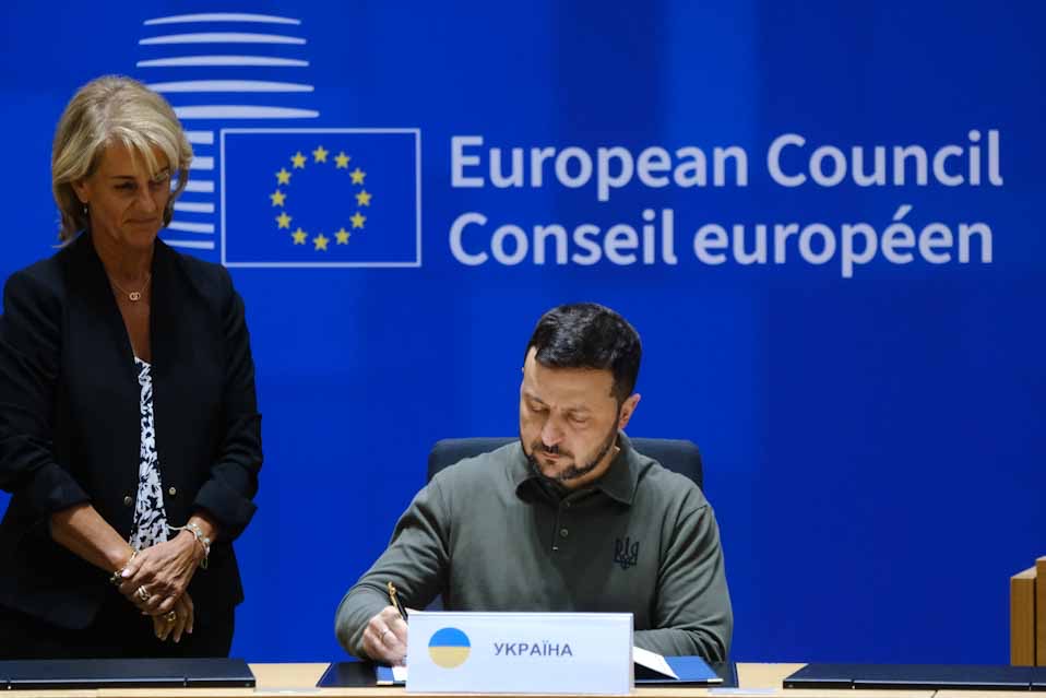 Η συμφωνία υπεγράφη από την επικεφαλής της Κομισιόν, Ούρσουλα φον ντερ Λάιεν, τον Πρόεδρο του Συμβουλίου της ΕΕ, Σαρλ Μισέλ και τον Ουκρανό ηγέτη.